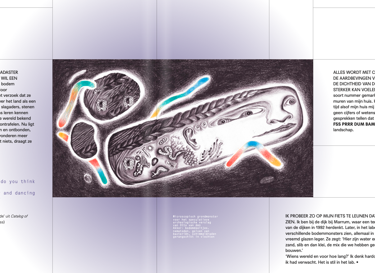 In Complicated terrains, I introduce a fictitious ethnographer who writes about the future of the Norther landscape in a poetic way, yet not neutral to current issues. His notes record the voices of fictitious inhabitants of the Groningen province who complicate the image and way of thinking about the future. Instead of proposing practical solutions or a utopian image of the future, these notes try to creatively interpret the current and possible issues with the Northern landscape and its backbone, the soil.